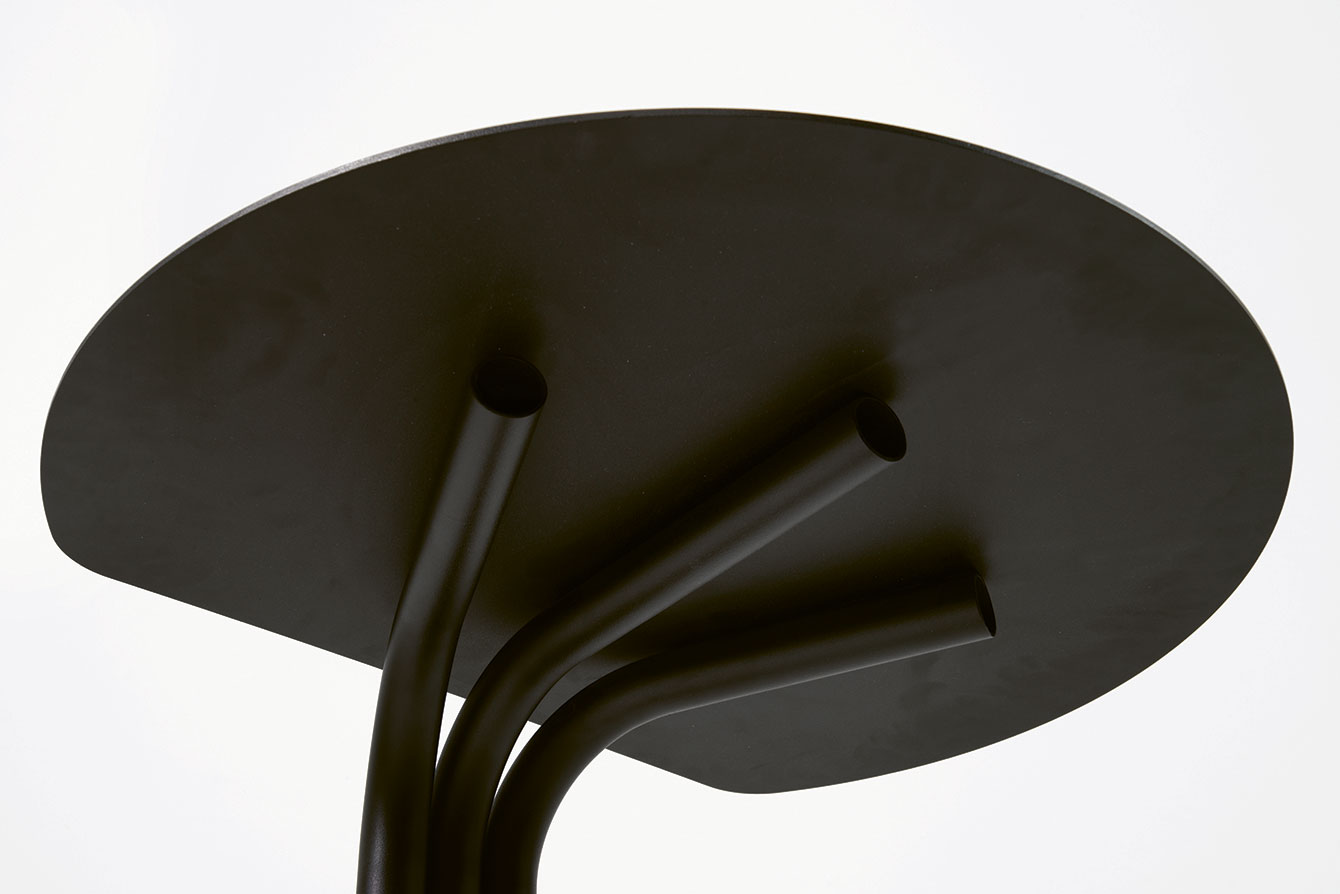 Misc is a collection of three powder-coated steel tables, each supported by a central leg that splits to ensure stability with the ground. Misc hints at the tables versatility, quietly suggesting they thrive in various settings, adapting without conforming. Like a composition of seemingly distinct elements coming together in harmony, Misc embraces variety, offering a subtle, understated presence that enhances its surroundings with purpose.